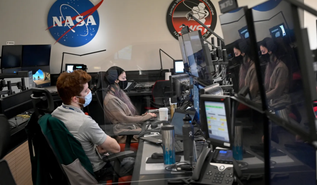 La salle de contrôle de vol du Space Telescope Science Institute à Baltimore. C’est depuis cette salle que les scientifiques ont suivi le lancement du télescope James Webb. (Photo: Washington Post par Katherine Frey, Crédit: Seattletimes)