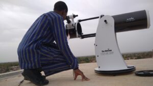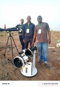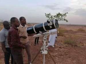 Ainsi l’équipe d’astrophysiciens conduit par le Dr S. Zacharie KAM, composé de ses passionnés étudiants et doctorants engagés dans la promotion de l’astronomie, s’investie au début et à la fin du mois de Ramadan, pour accompagner et donner des arguments scientifiques pour les décisions de la FAIB. De nos jours la confirmation l’observation du croissant lunaire ne repose plus uniquement sur l’œil nu, elle est scientifique avec l’implication d’universitaires utilisant des télescopes et d’autres outils d’astronomie pour faciliter la détection du croissant lunaire. Ces outils permettent d’améliorer la précision des observations et d’accompagner les décisions religieuses. Cette année encore l’équipe était au rendez-vous.