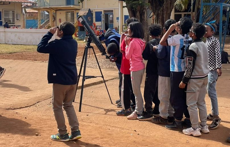 À Antsirabe, le festival a pris une dimension particulièrement intergénérationnelle. Dès le 4 juillet au matin, au Collège français Jules Verne, les élèves de CE2 ont participé à un atelier consacré au Soleil. Observer notre étoile en toute sécurité, comprendre ses taches, ses cycles d’activité et son rôle fondamental dans notre système planétaire : pour beaucoup, il s’agissait d’un premier contact direct avec une démarche scientifique expérimentale.