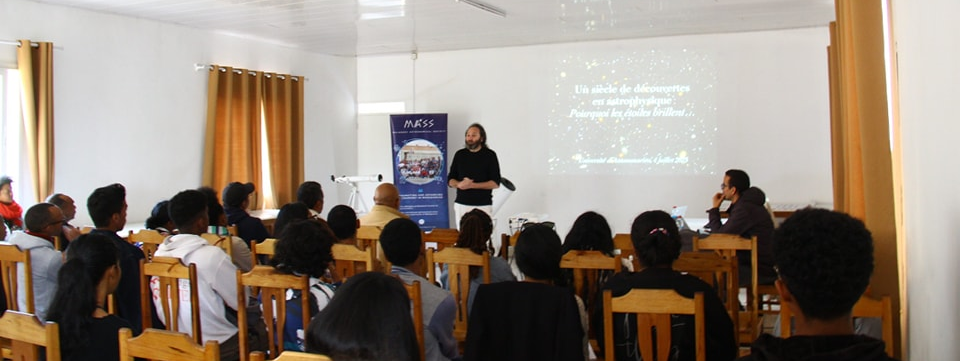 À Antananarivo, la dimension universitaire et internationale du festival s’est affirmée dès le 4 juillet à l’Université d’Antananarivo. Jean-Philippe Uzan a retracé « Un siècle pour comprendre pourquoi les étoiles brillent », revenant sur les révolutions théoriques du XXe siècle qui ont permis de comprendre pourquoi le Soleil brille et ainsi d’en déterminer l’évolution future. À ses côtés, Abdelkarim Boskri a abordé le suivi des satellites artificiels et des débris spatiaux, soulignant les enjeux scientifiques et stratégiques de ces observations depuis le sol africain. Une conférence qui a été co-organisée avec le parcours d’Astronomie et Astrophysique de l’université et l’association Malagasy Astronomical Society.